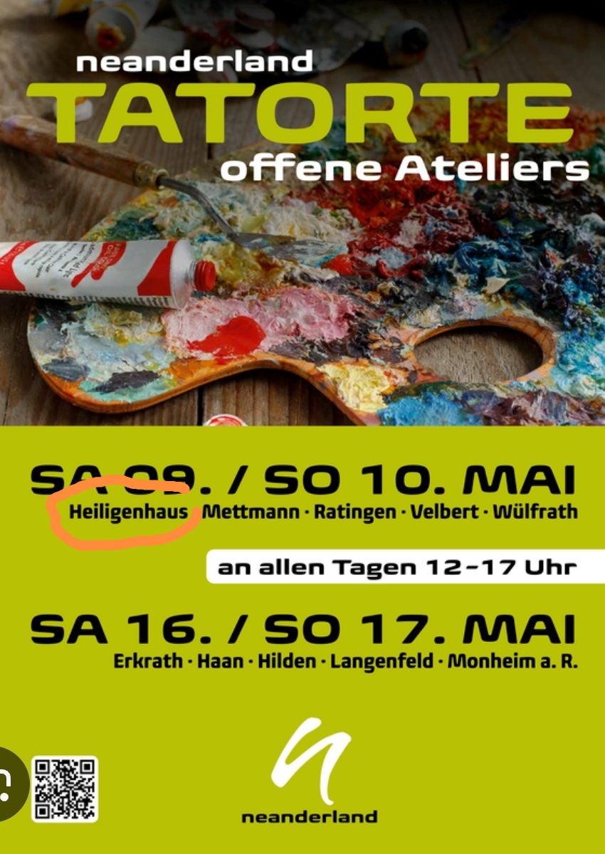 Bitte besuchen Sie mich am 09. u. 10. Mai 2026 von 12-17 Uhr in meiner Gemälde-Ausstellung in Heiligenhaus im Rahmen der Neanderland-Tatorte. Ich lade Sie herzlich dazu ein. Alles Weitere über den Link: